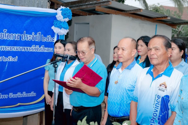 นายอุดมเกียรติ หงษ์มาลา นายอำเภอพนมไพร เป็นประธานในพิธีมอบบ้านตามโครงการสร้างบ้านพักและซ่อมแซมบ้านเพื่อผู้ยากไร้ ผู้ด้อยโอกาส ประจำปี2568 เพื่อเฉลิมพระเกียรติ สมเด็จพระนางเจ้าสิริกิติ์ พระบรมราชินีนาถ พระบรมราชชนนีพันปีหลวง เนื่องในวันเฉลิมพระชนมพรรษา 12 สิงหาคม 2568 โดยมีนายสถิตย์ โชติ์ขัน นายก อบต.หนองทัพไทย กล่าวรายงานต่อท่านประธานในพิธี พร้อมด้วย หัวหน้าส่วนราชการ สมาชิกเหล่ากาชาดจังหวัดร้อยเอ็ดในเขตอำเภอพนมไพร กำนัน ผู้ใหญ่บ้าน เหล่าจิตอาสา และประชาชนในพื้นที่ตำบลหนองทัพไทย เข้าร่วมกิจกรรมฯ ณ บ้านนางสอน อ่อนคำ บ้านเลขที่ 38 บ้านหนองคู หมู่ที่ 13 ตำบลหนองทัพไทย อำเภอพนมไพร จังหวัดร้อยเอ็ด