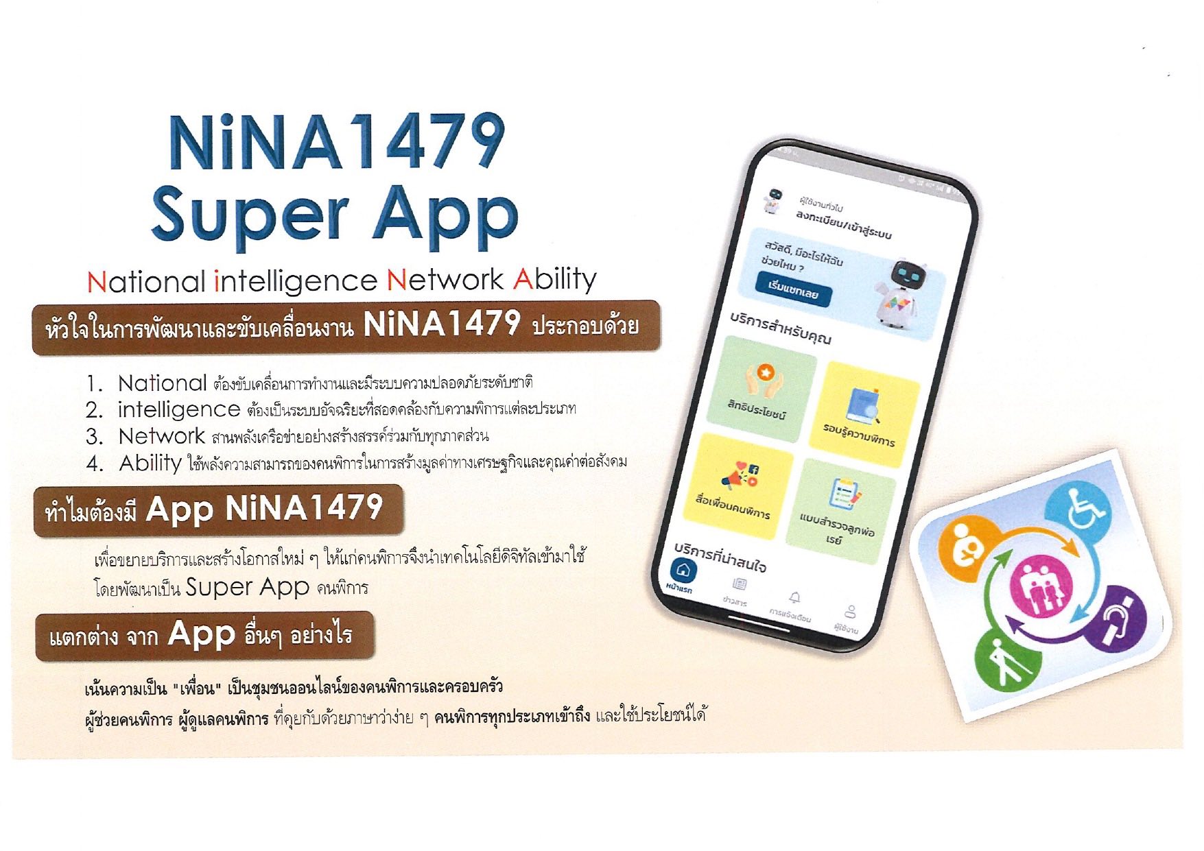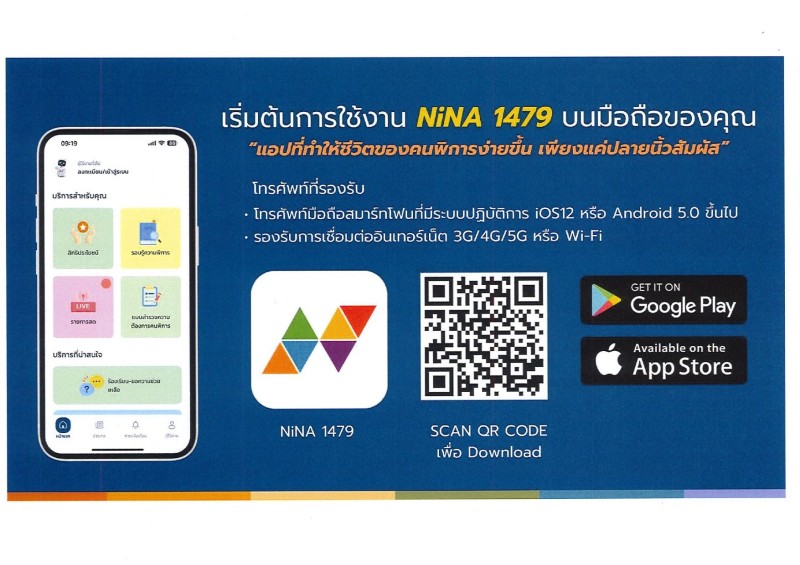 หัวข้อ :: ประชาสัมพันธ์แอพ “NiNA 1479 Super App” ศูนย์รวมบริการเพื่อผู้พิการ